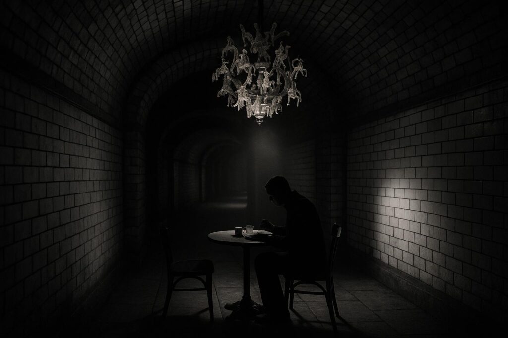 Reports differ on one of the restaurant’s most intriguing conceits. The fit‑out leans heavily on cues associated with disused subterranean infrastructure — arched volumes, tiled surfaces and a mezzanine plan that evoke a tube station — and has been variously described as “what looks like a former tube station, but isn’t” and as a refurbished or revamped station‑like site. Either way, the design plays with that architectural memory to create a dramatic, slightly uncanny sense of arrival that prepares diners for something out of the ordinary.