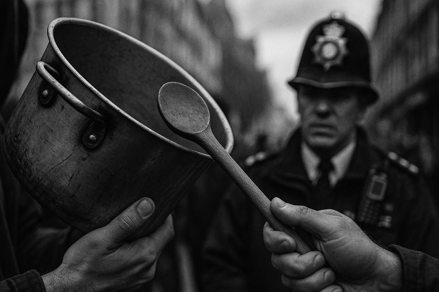 The claims in the narrative are plausible and align with other reports of pro-Palestinian protests in London on 9 August 2025. The use of metal pots and spoons as protest tools has been documented in previous demonstrations. The tone and language used are consistent with typical reporting on such events.