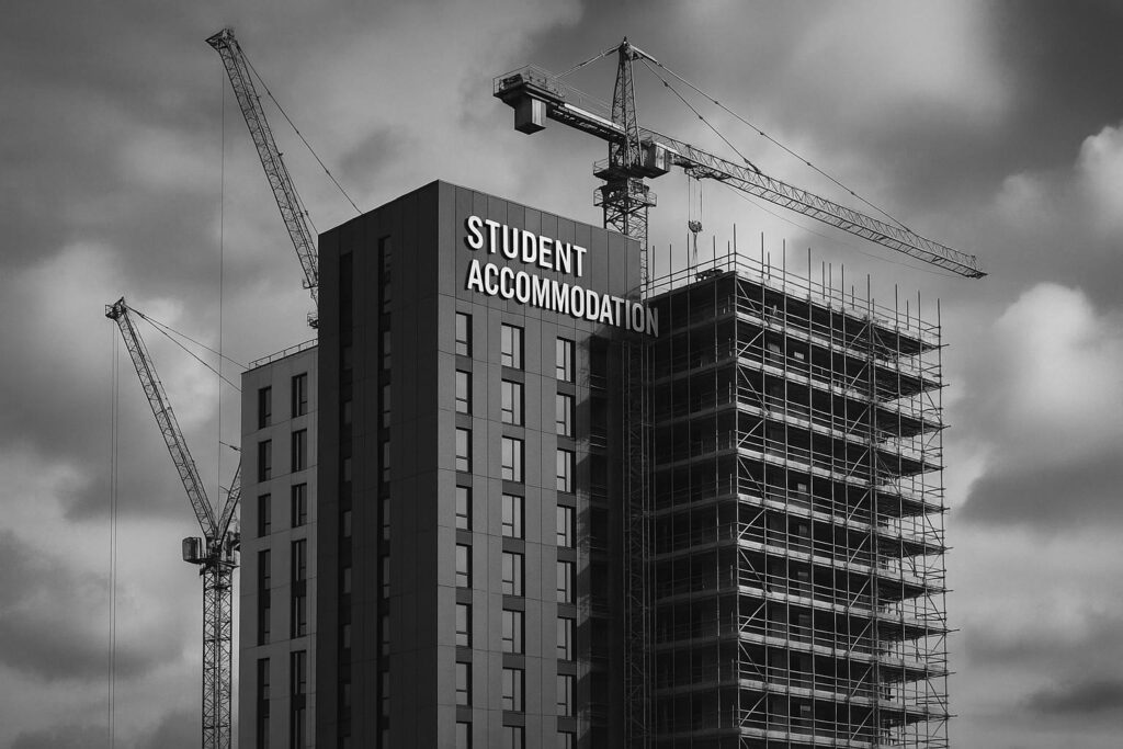 The topping out of the development, which occurred earlier this year, signifies a key milestone as the construction advances towards completion. The three-block scheme combines 241 en suite cluster bedrooms with 156 self-contained studio apartments, reflecting a flexible housing mix to meet diverse student needs.